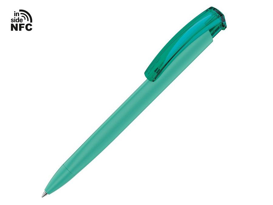 Пластиковая шариковая ручка «Trinity K transparent Gum» soft-touch» с чипом передачи информации NFC обеспечивает быстрый доступ к рекламной информации. Для передачи данных посредством технологии NFC смартфон или планшет, которые поддерживают данную технологию, необходимо поднести к запрограммированной на ручке метке NFC (метка расположена под логотипом NFC). После этого на смартфоне или планшете откроется запрограммированная ссылка на сайт, ролик или начнется загрузка другой информации (заранее загруженной в сеть интернет). Таким образом метка работает как код, при чтении которого смартфон или планшет открывает определенную программу, активирует функцию или ссылку. Можно запрограммировать на метке NFC адрес сайта, каталог и другие рекламные материалы и раздавать вместо визиток. Метка NFC активирует одно действие на смартфоне или планшете.