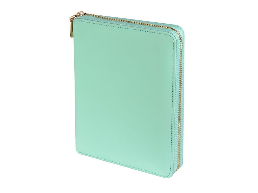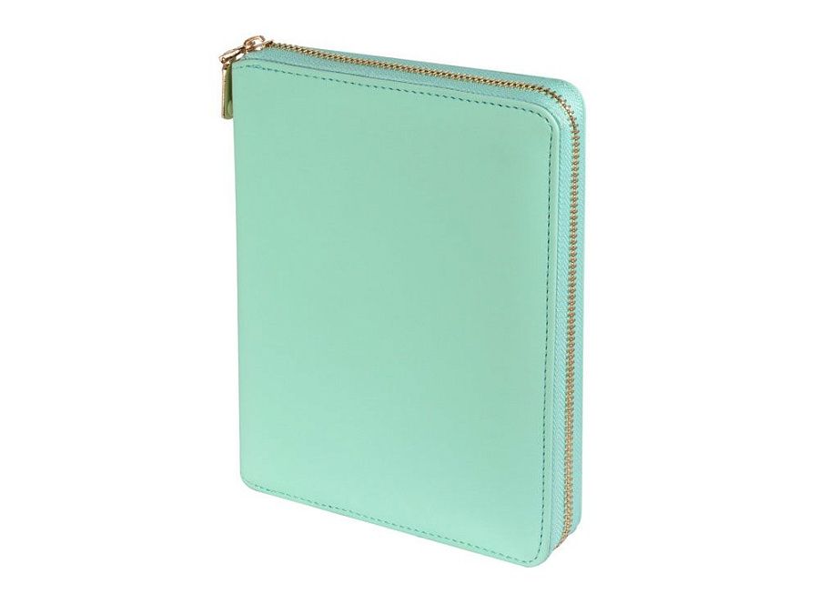 Деловая нежность! Вот как можно охарактеризовать этот очаровательный зефирно-голубой ежедневник. Большое отделение на молнии вмещает в себя и сменный блок для записей на кольцевом механизме, и отделения для визиток и ручки. В этом бизнес-аксессуаре поместятся и дополнительные документы и смартфон.