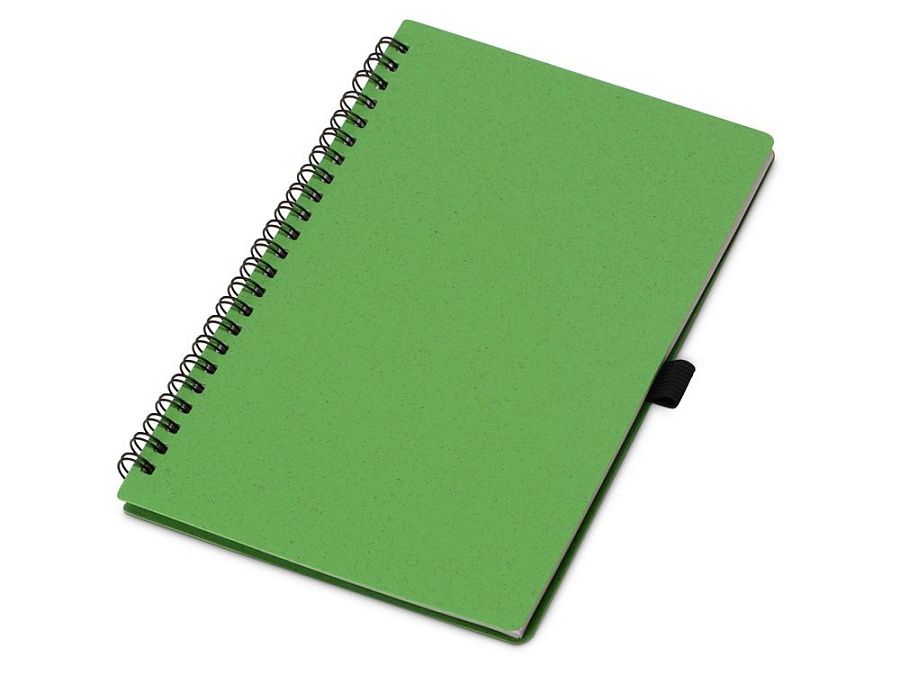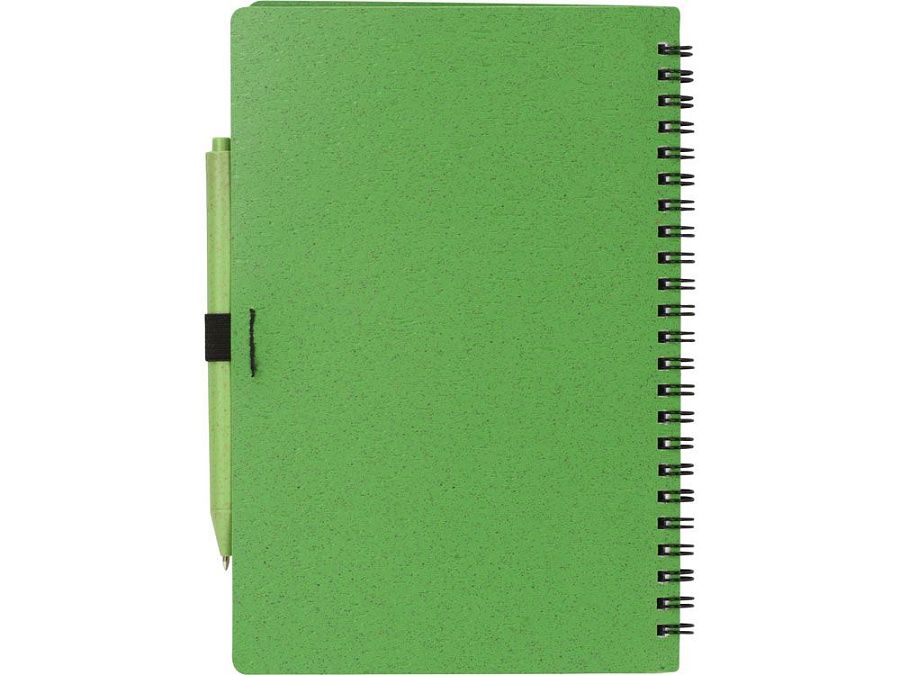 Блокнот с обложкой из переработанной пшеницы и пластика. Блок состоит из 80 листов переработанной бумаги белого цвета. Крепление - пружина. В комплекте шариковая ручка в тон блокноту из пшеничной соломы.