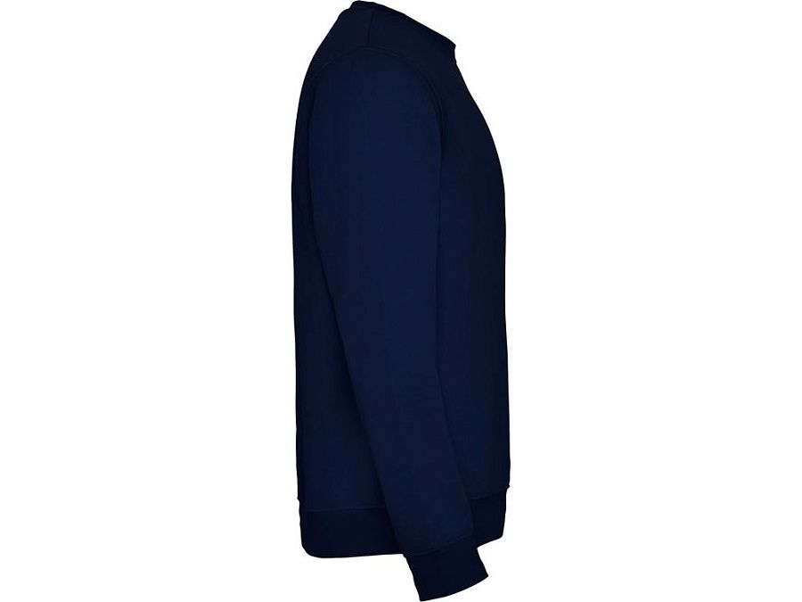 Классическая толстовка свитшот с эластичным рибом 1x1 на воротнике, манжетах и низу изделия. Шов горловины укреплен изнутри тесьмой.