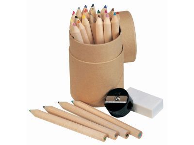 24 цветных карандаша, резинка и точилка в картонной цилиндрической коробке |
