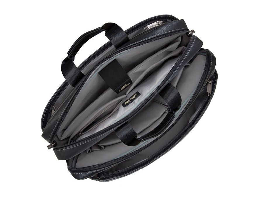 • Два внешних передних кармана на молнии. Один для хранения аксессуаров, зарядного устройства. Второй оборудован панелью-органайзером для хранения визитных карт, авторучек, смартфона.