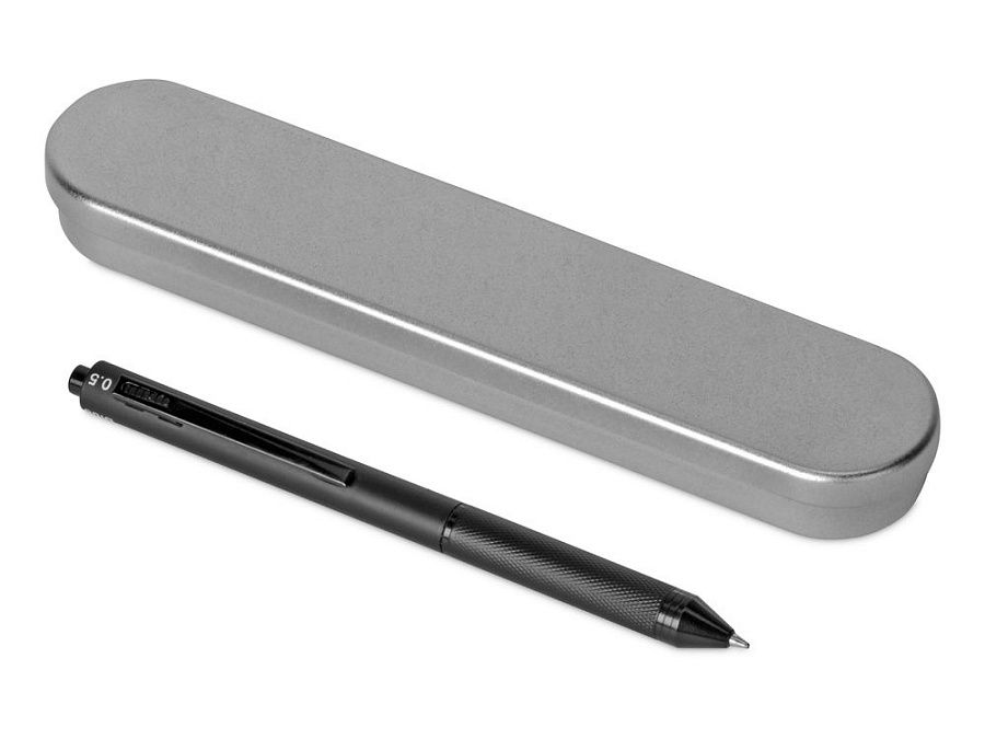 Мультисистемная металлическая ручка «System» отличается универсальностью и многофункциональностью. В строгом минималистичном корпусе умещаются чернила трех цветов — синего, черного и красного — и карандашный грифель толщиной 0,5 мм. Благодаря автоматическому переключению на нужный тип пишущего элемента, ручка заменяет целый набор письменных принадлежностей. Поставляется в металлическом серебристом футляре с матовым покрытием.