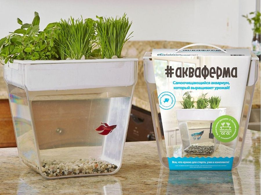 Акваферма представляет собой самоочищищающийся аквариум, который ещё и выращивает урожай.