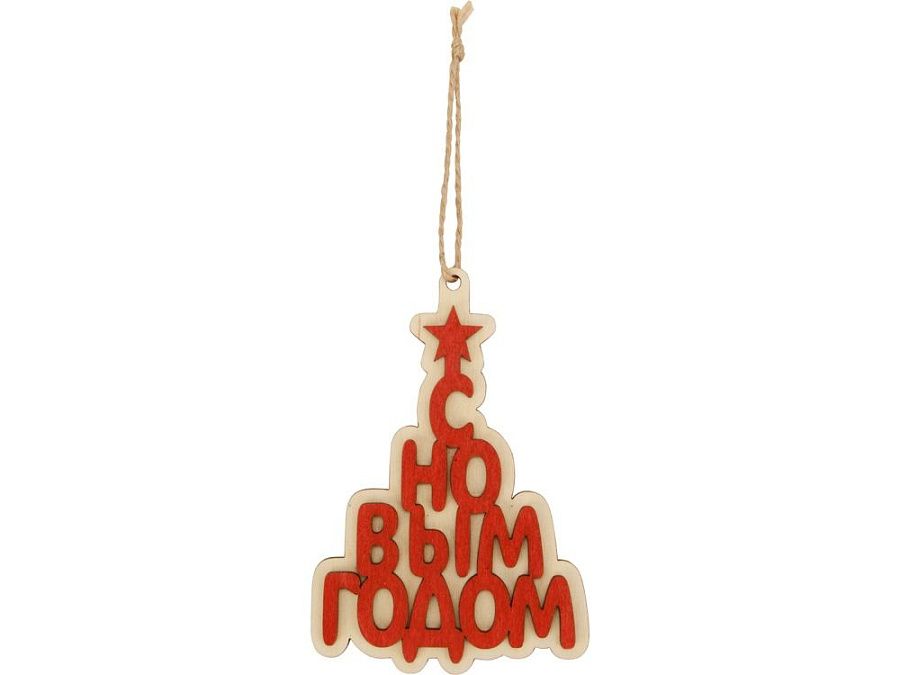 Оригинальное елочное украшение в виде поздравления "С новым годом!". Подвеска выполнена из березовой фанеры и тонирована в красный цвет.