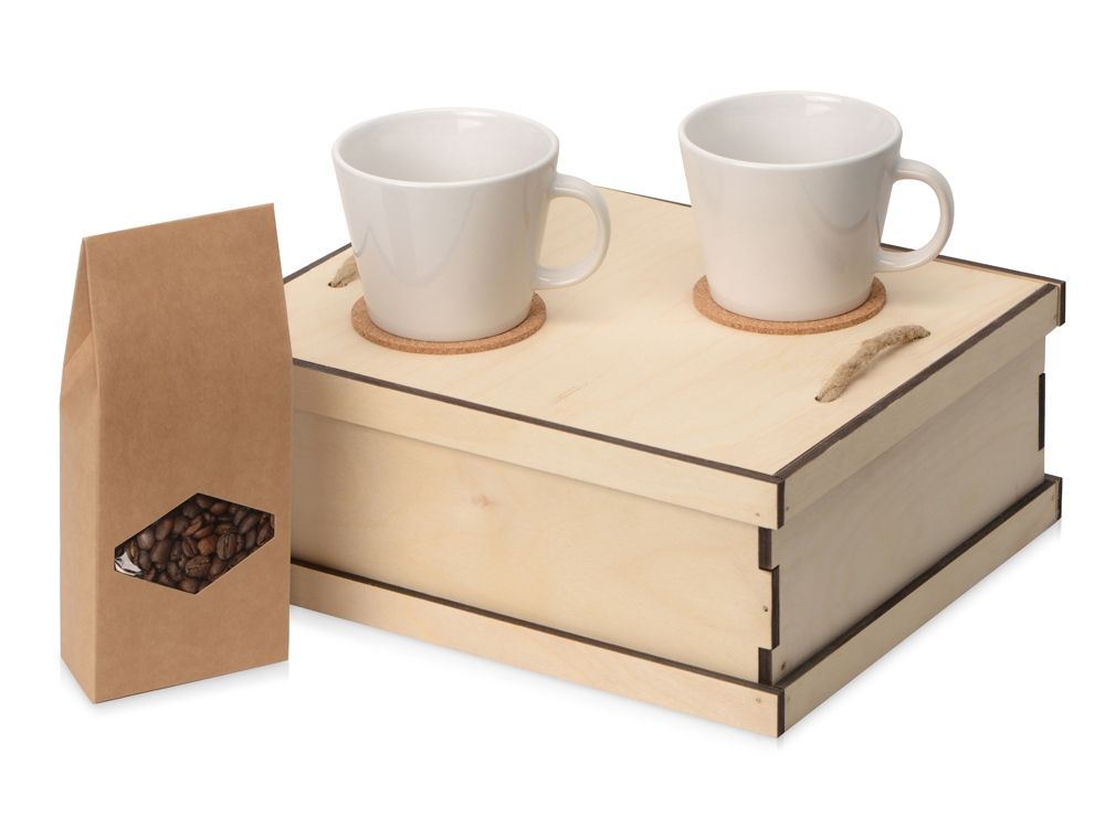 Набор для настоящих кофеманов: кофе 100% арабика и две чашечки с костерами станет идеальным подарком на праздник.