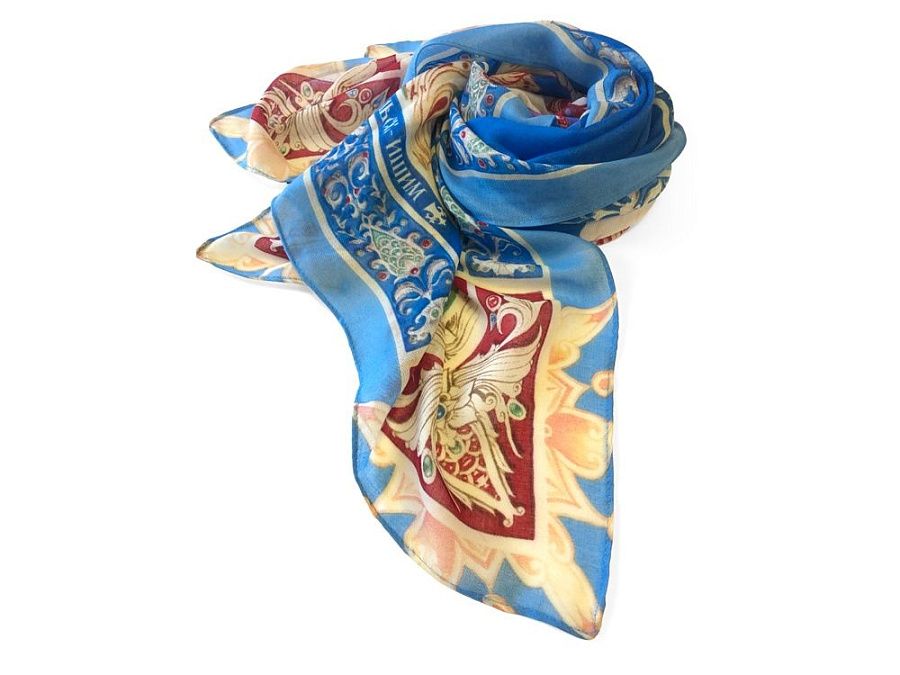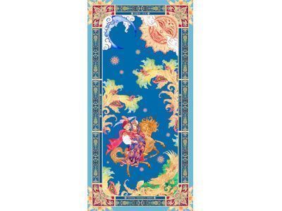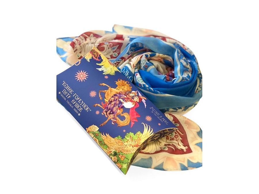 Прочитав сказку юного дарования, сам великий Александр Сергеевич Пушкин сказал: «Этот род сочинений я могу теперь оставить» - и Петр Ершов был принят в круг петербургских писателей.В этом году сказке из золотого фонда русской литературы, переведенной на все языки мира, исполняется 185 лет. Ее яркие краски мы перенесли на шелк и создали платок «Конек-Горбунок». Благодаря тонкой работе дизайнера, со страниц книги, как живые, сошли герои любимой с детства истории: Иван, прекрасная Царь-девица и волшебный Конек-Горбунок. А в роскошных орнаментах сплелись легендарное перо Жар-птицы, Красное Солнышко и Месяц…