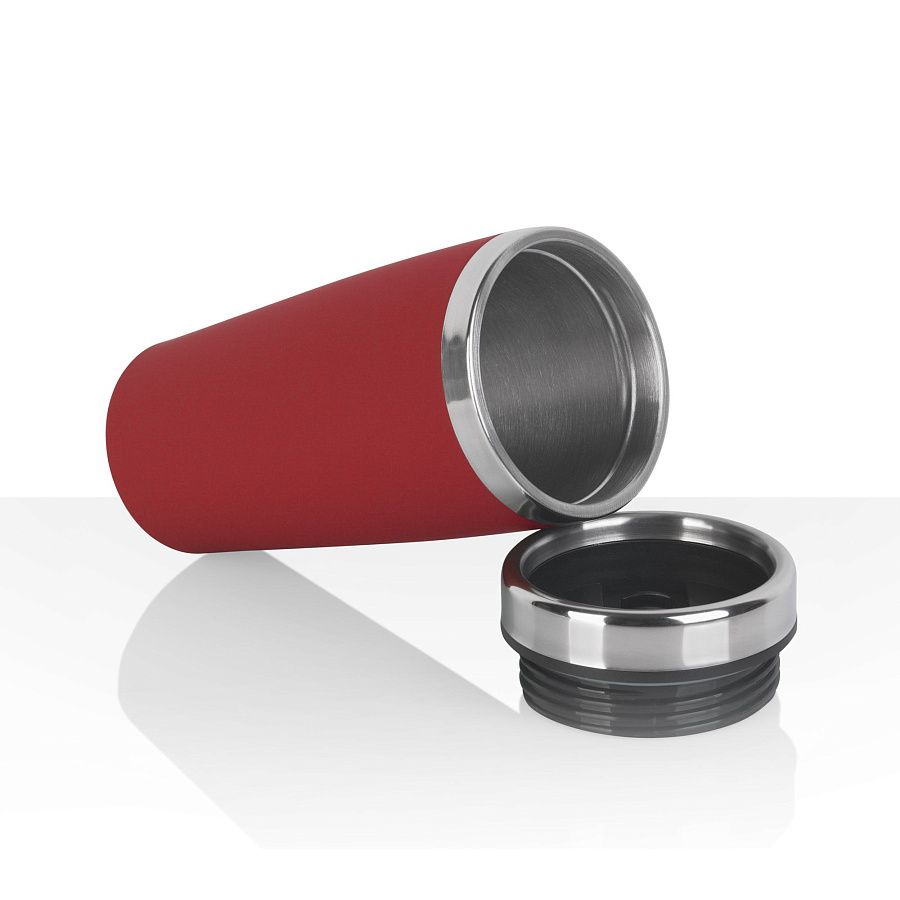 Внешняя стенка термостакана изготовлена из нержавеющей стали с уникальным прорезиненным напылением soft-touch, а внутренняя стенка выполнена из высококачественной пищевой, нержавеющей стали. Корпус изделия персонализируется по окружности встык. У термостакана отвинчивающаяся крышка.