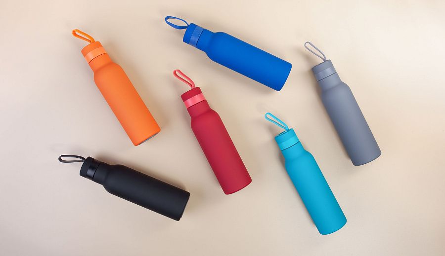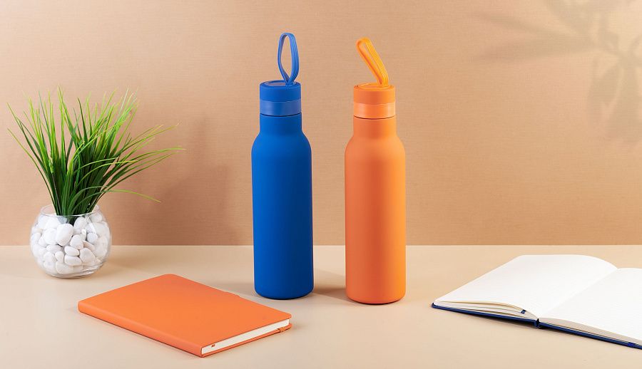 Завинчивающаяся колба защищает от протекания, удобная силиконовая ручка позволяет комфортно носить бутылку.