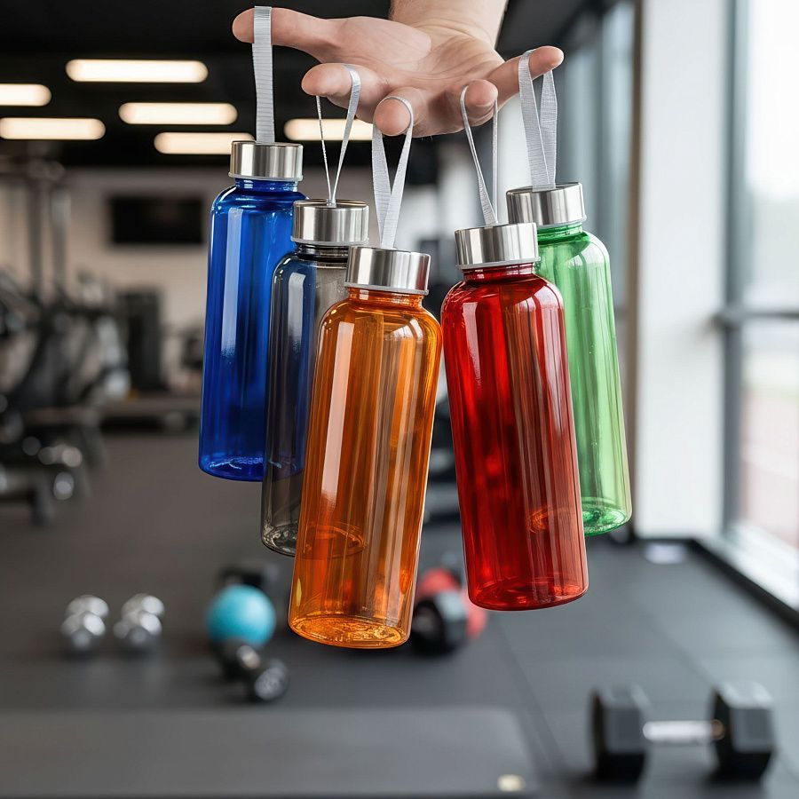 Бутылка для воды «H2O» — это удобный и полезный презент для любого человека. Она позволяет всегда иметь при себе запас (500 мл) чистой питьевой воды. Бутылка изготовлена из экологически чистого пластика и оснащена завинчивающейся металлической крышкой. Текстильная ручка на крышке дает возможность максимально удобно переносить емкость в руках. Благодаря стандартному размеру, бутылка хорошо помещается в сумку и рюкзак.