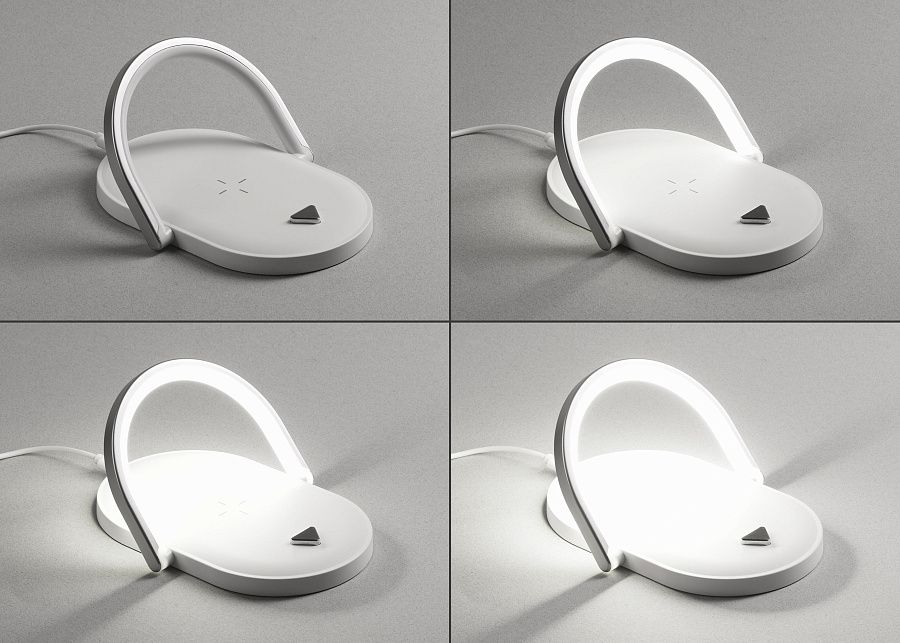 3 режима яркости освещения - нажатие на сенсорую кнопку, расположенную посередине ободка лампы.
