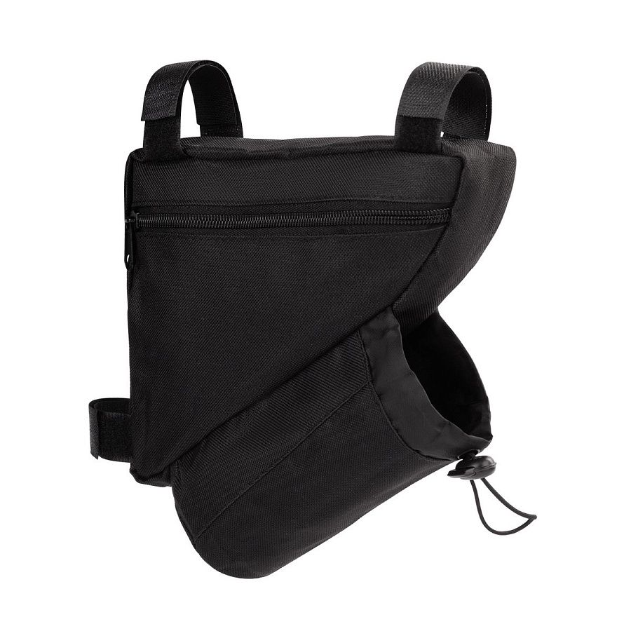 Велосипедная сумка из прочного полиэстера 600D на прорезиненной основе, легко закрепляется на раме велосипеда с помощью трех липучек.