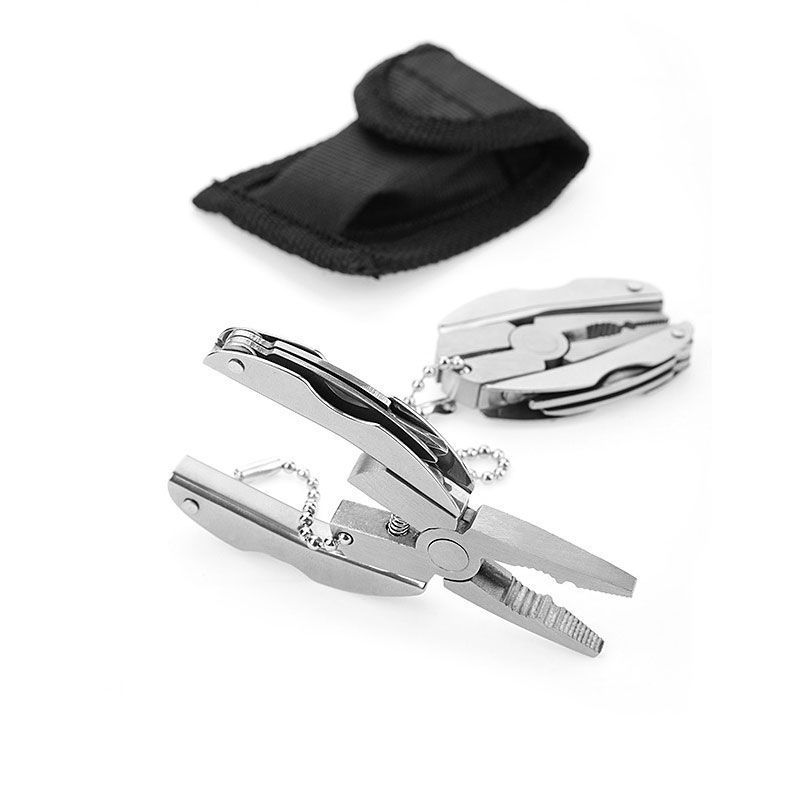 - Функции: плоскогубцы, пилка, нож, прямая отвёртка, крестовая отвёртка