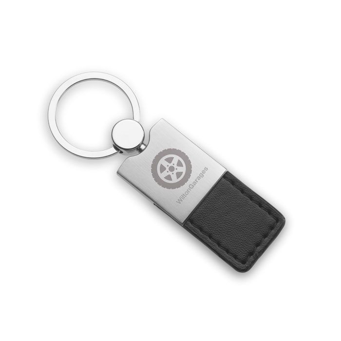 Брелок для ключей с блестящей металлической отделкой и ПУ ремешком. Классический сувенир.