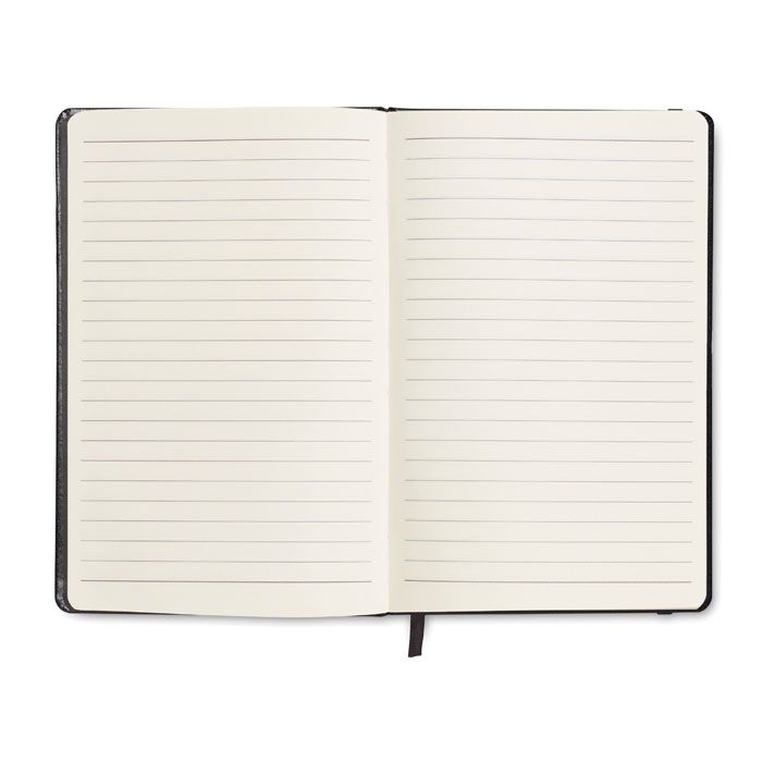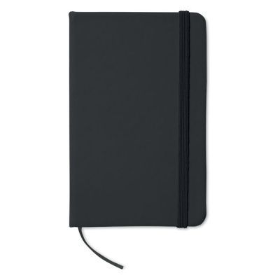 Блокнот формата А6 в обложке из полиуретана на резинке. 96 линованых страниц.