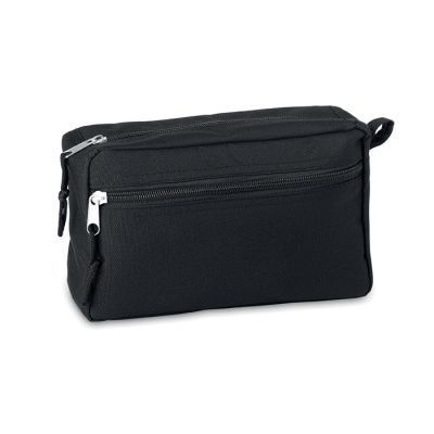 Косметичка с двойной молнией из 600D RPET с полиуретановой подкладкой.