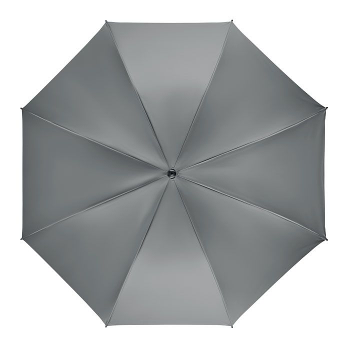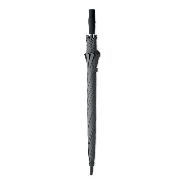Зонт антиштормовой из эпонжа 190T со спицами и штоком из стекловолокна. Ручное открытие. Черные пластиковые наконечники и верхушка. Ручка ровная черная из пластика АБС, покрытие софт тач. Открытый купол диаметром Ø 116 см