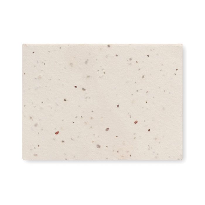 Блок стикеров в мягкой обложке из бумаги, содержащей семена травы. После использования , бумагу можно закопать и взойдут семена луговых полевых цветов.
