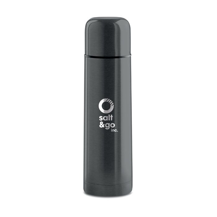 Термос из нержавеющей стали. Емкость 500 мл. Металлическая колба, прока с нажимным механизмом , крышка-чашка с пластиковой колбой. Можно мыть в посудомоечной машине. При гравировке вскрывается серебристый металл.