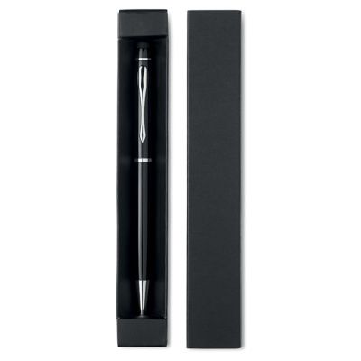 Алюминиевая шариковая ручка с поворотным механизмом и стилусом. Синие чернила. Картонная коробка.