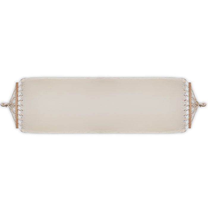 Парусиновой гамак. Декорирован сеткой. Выдерживает вес до 120 кг. Длина 190 см. Упакован в мешок из парусины.