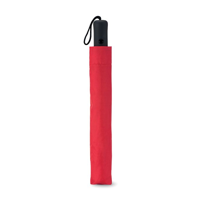 Зонт полуавтомат в 2 сложения с металлическим стержнем и прорезиненной пластиковой ручкой. Длина в сложенном виде 41 см.