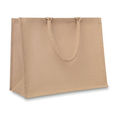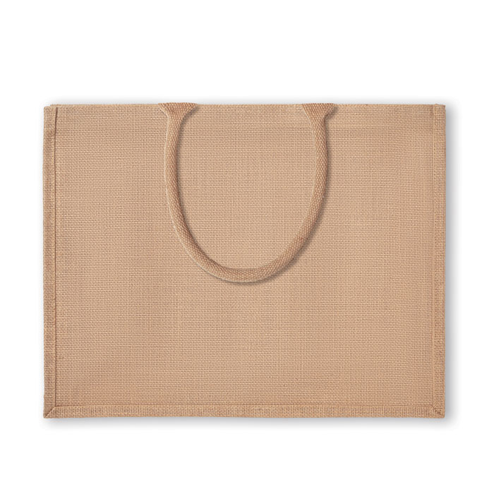 Сумка для покупок из джута с элементами из хлопка. Внутрення ламинация. Короткие ручки.