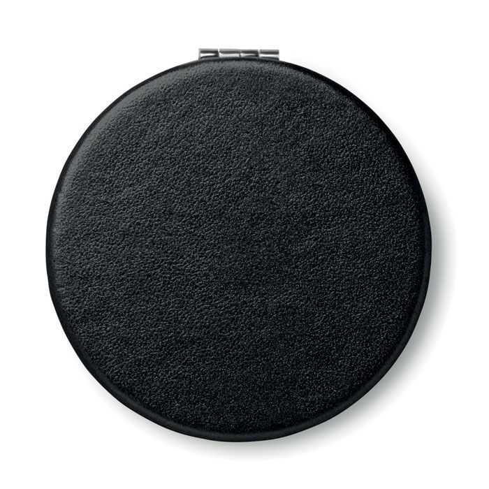 Двойное косметическое зеркальце круглой формы на магните с покрытием из полиуретана.