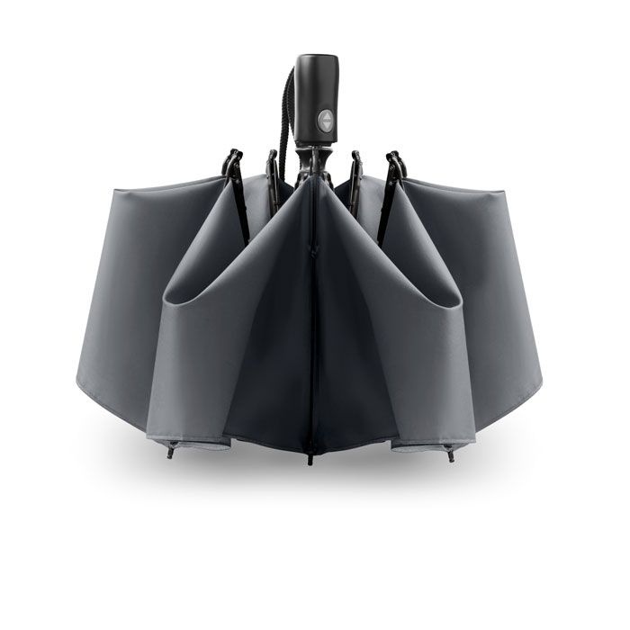 "Зонт в 3 сложения, размером 23"", реверсивный из материала эпонж плотностью 190T. Шток из хромированной стали, спицы из стекловолокна, ручка из пластика. Чехол в комплекте."