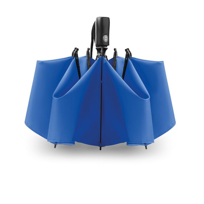 "Зонт в 3 сложения, размером 23"", реверсивный из материала эпонж плотностью 190T. Шток из хромированной стали, спицы из стекловолокна, ручка из пластика. Чехол в комплекте."