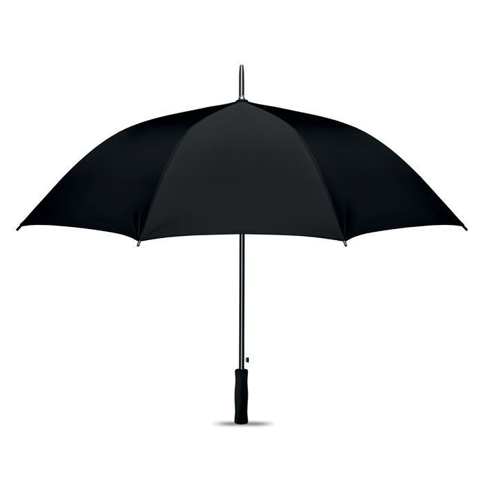 "Зонт полуавтомат размером 27"" из полиэфирного материала плотностью 190Т. Шток и спицы металлические, наконечники спиц пластиковые, внутренняя отделка серебристого цвета, ручка из вспененного материала."