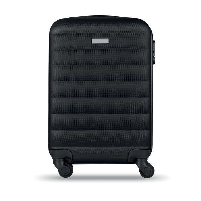Чемодан из прочного пластика, с запирающим шифром. Внутри 2 одинаковых отделения: одно застегивается на ремешок, второе-на молнию. Чемодан вращается на 360 градусов и подходит для ручной клади.