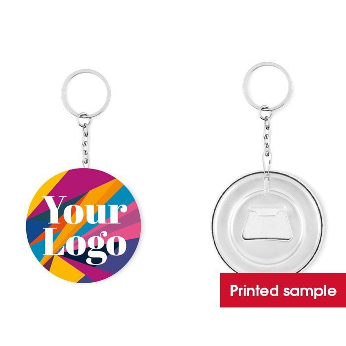 Открывалка в виде брелока с бумажной вставкой, ламинированная.