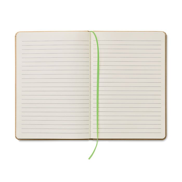 Блокнот А5 из переработанного картона с цветной закладкой и резинкой в тон. Блок линованный на 80 листов.