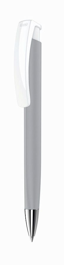 Клип из белого глянцевого пластика, металлический наконечник с глянцевым хромированием.
