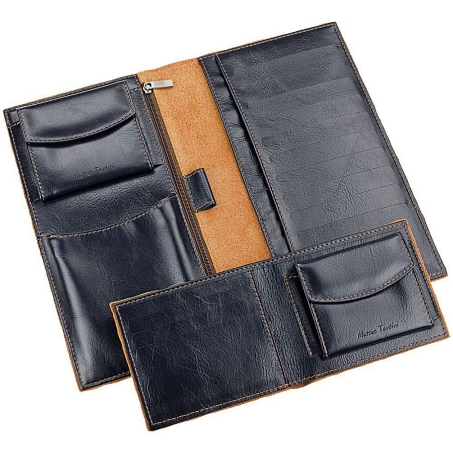 Органайзер: отделения для банкнот, дорожных билетов и пластиковых карт, карманы для монет и sim-карт. Портмоне: отделения для банкнот и пластиковых карт, карман для монет.