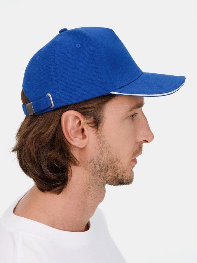 Модель бейсболки с 5-ю клиньями без лобового шва из плотного чесаного хлопка.