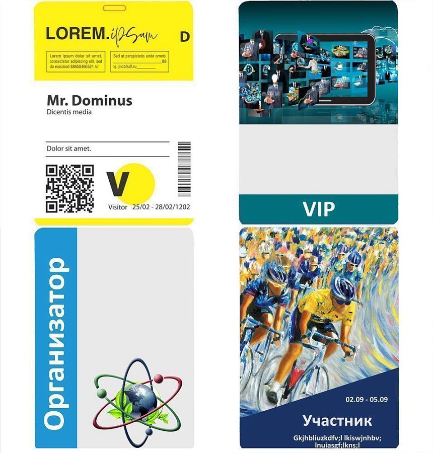 Яркое и четкое изображение печатается прямо на картоне с одной или двух сторон, а затем ламинируется — так бейдж становится более устойчивым к истиранию и воздействию влаги.