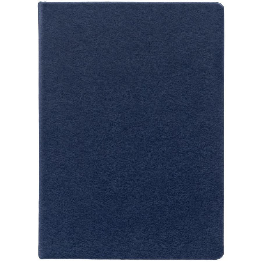 Ежедневник с твердой обложкой и тонированным обрезом. Выполнен из материала Latte, темно-синий, дополнен ляссе в цвет обложки.