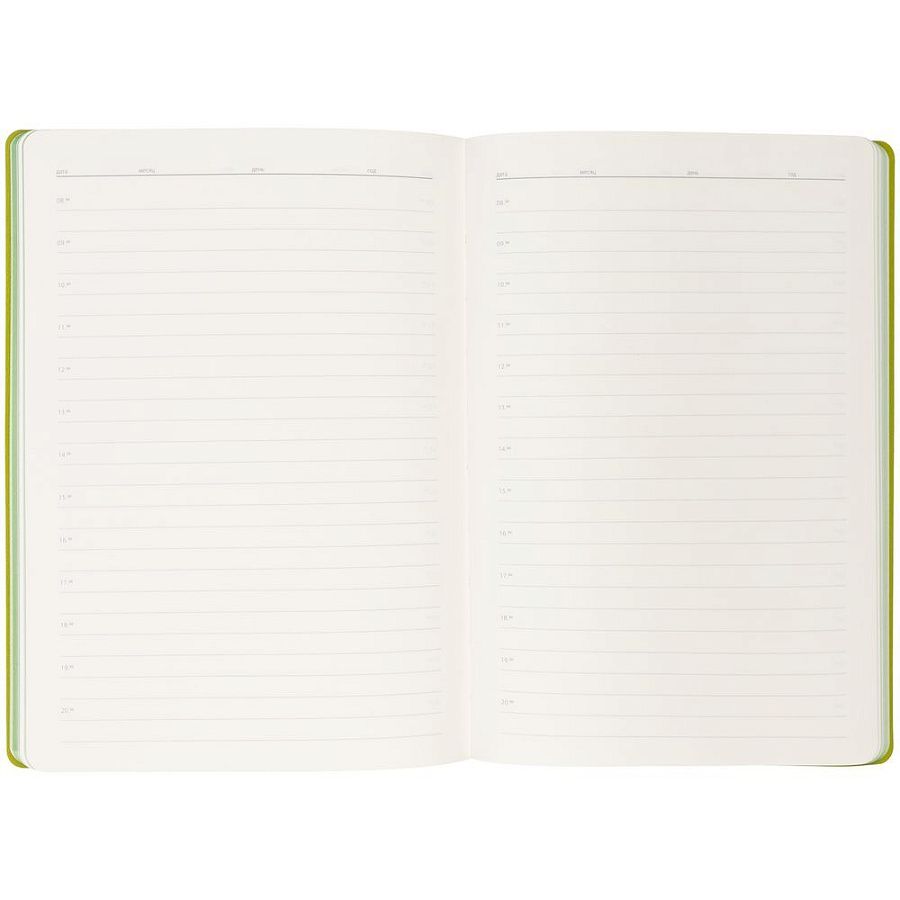 Гибкая обложка ежедневника выполнена из материала Soft Touch Pearl, черный АА и цветного Latte (внутренняя часть обложки).