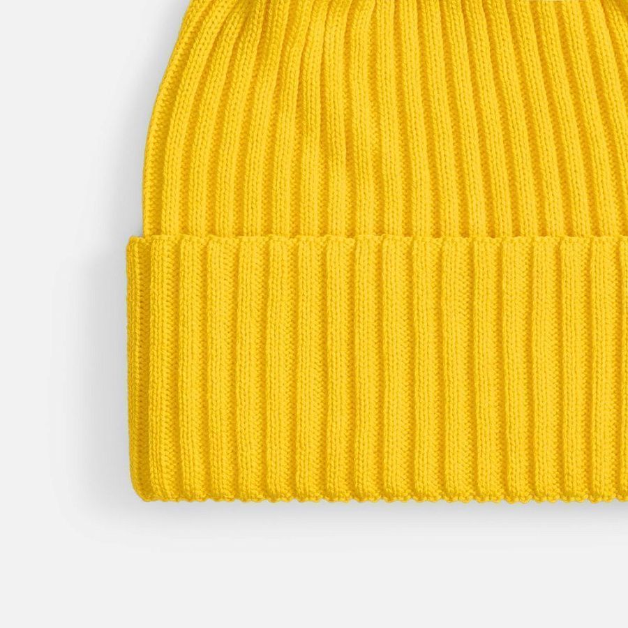 Однослойная шапка фактурной вязки с двойным отворотом.