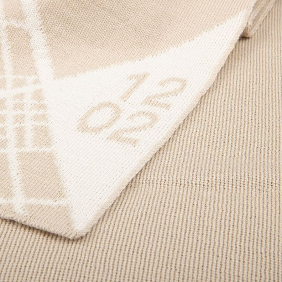 Шарф с вывязанным логотипом и/или индивидуальным рисунком в фирменной цветовой гамме.