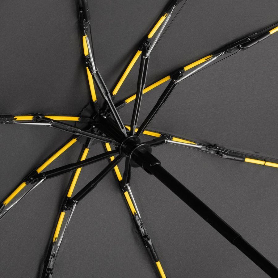 Купол зонта AOC Mini произведен из сертифицированного OEKO-TEX полиэфирного эпонжа из переработанного пластика, окрашенного по технологии waterSAVE. Новый процесс окрашивания — непосредственно в процессе производства материала — снижает потребление электричества, воды и химически активных веществ.