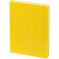 Ежедневник с твердой обложкой. Выполнен из материала Latte, желтый, дополнен ляссе в цвет обложки.
