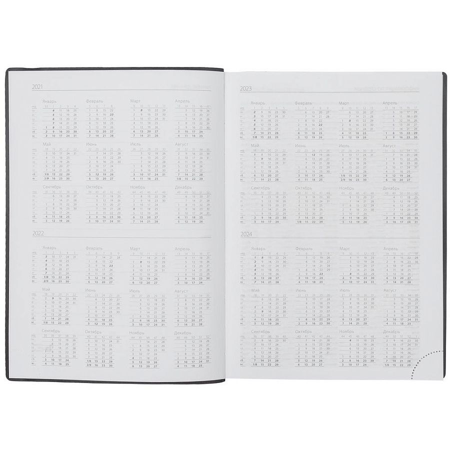 Ежедневник с гибкой обложкой выполнен из материала Brand, черный АА, и дополнен резинкой шириной 1 см с металлическим шильдом, капталом, ляссе черного цвета.