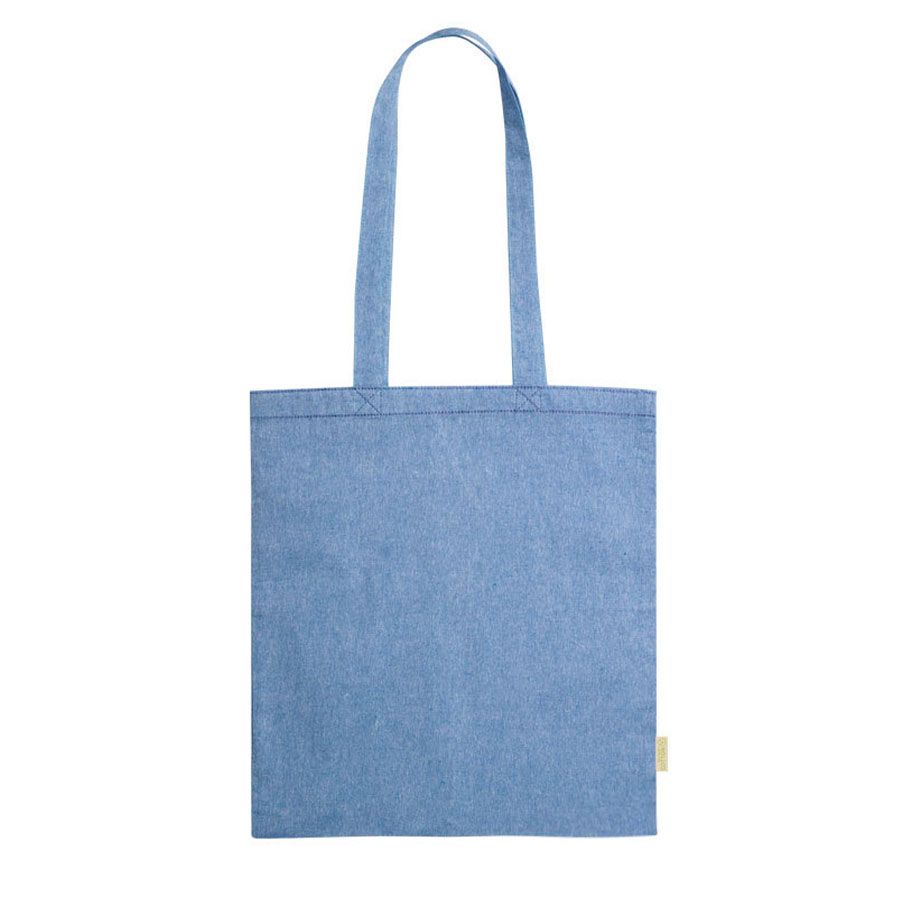 Сумка для покупок выполнена из 100% переработанного хлопка, плотностью 120 г м2. Переработанный хлопок получается из отходов текстильного производства или из старой одежды. Исходный материал измельчается, потом из этой массы вытягивают нити, из которых ткут новую ткань. Близкий к Pantone Blue 2728 C В переработанных тканях модная индустрия видит будущее. И оно уже здесь. Сумки, созданные из переработанного хлопка, ничуть не хуже «первичных». Они не отличаются на ощупь и служат так же долго, как и модели из не переработанного материала. Сумка выдерживает нагрузку до 8 кг.