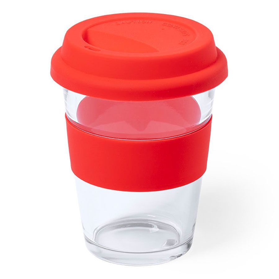 Стеклянный стакан с цветной силиконовой крышкой и манжетой. Манжета обеспечивает безопасность ваших рук при использовании стакана для горячих напитков. Индивидуальная упаковка - белая картонная коробка с изображением продукта.