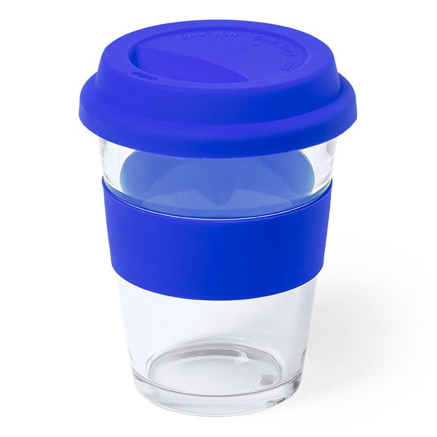 Стеклянный стакан с цветной силиконовой крышкой и манжетой. Манжета обеспечивает безопасность ваших рук при использовании стакана для горячих напитков. Индивидуальная упаковка - белая картонная коробка с изображением продукта.