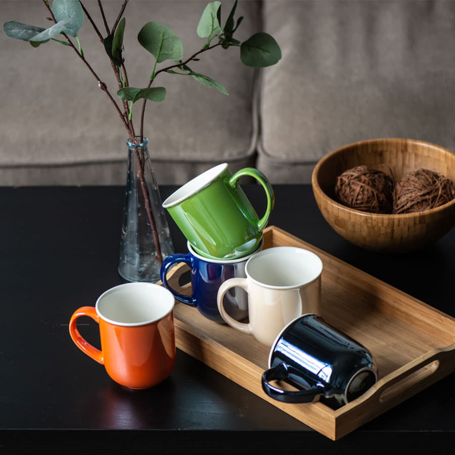 Кружка необычной, скругленной внизу формы, дополнена белым кантом по верхнему краю и актуальным покрытием с жемчужным блеском или эффектом перламутра. Переливчатость цвета создается благодаря особой структуре покрытия, которая по-разному преломляет солнечные лучи. Цвет близкий к Pantone Pearled Ivory
