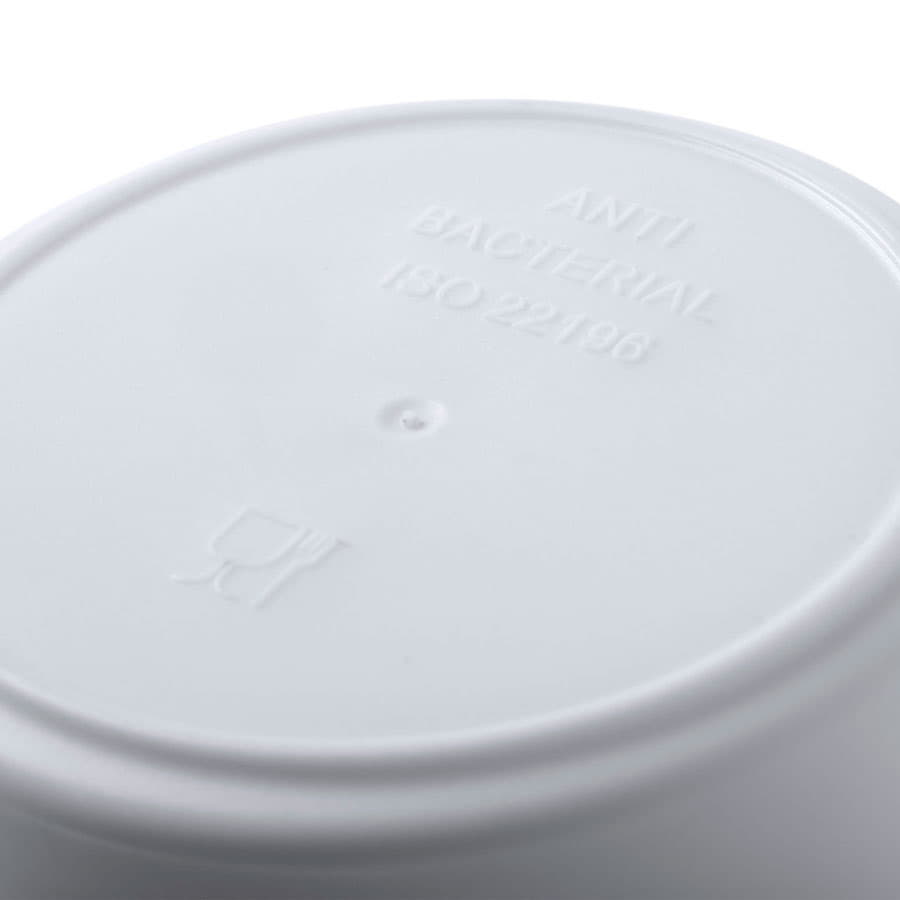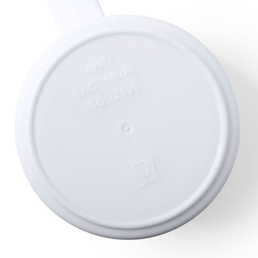 Кружка изготовлена из особого антибактериального пластика (BPA free) и упакована в специальный пакет Антибактериальный пластик снижает уровень бактерий, присутствующих на поверхностях, благодаря добавлению постоянных статических микробных агентов, с высокой эффективностью предотвращающих бактериальное загрязнение. Изделие соответствует стандарту ISO 22196, который определяет антибактериальную активность в пластичных материалах и непористых поверхностях. Кружка подходит для использования в микроволновой печи и посудомоечной машине.